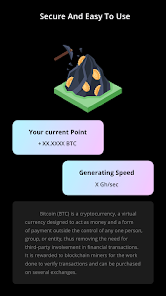 O aplicativo se destaca por garantir a privacidade e segurança dos dados dos usuários, funcionando como minerador em nuvem e também como uma plataforma de ganhos em Bitcoin. Além das funcionalidades de mineração, oferece serviços relacionados a várias categorias dentro do universo das criptomoedas, como BTC Cloud e Crypto Coin Mining, tornando-se uma opção prática para quem deseja explorar o mercado de criptomoedas.